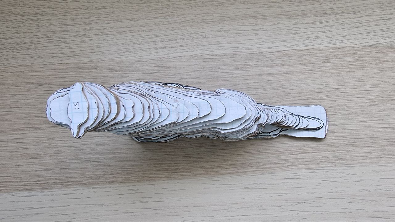 Having found a suitable model, I was then standing upon a real challenge: I had to find a way to convert it into slices of specific thickness so that I could trace individual pieces and then glue them together.
