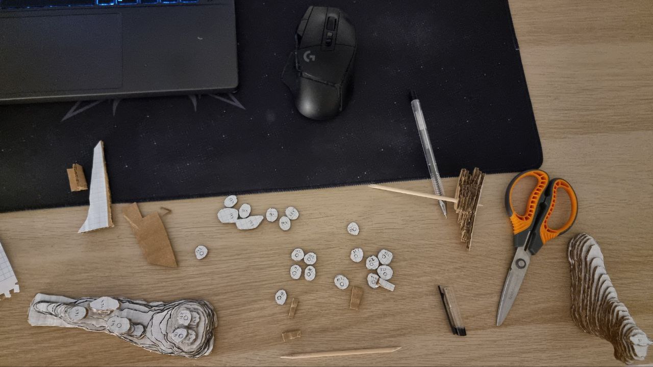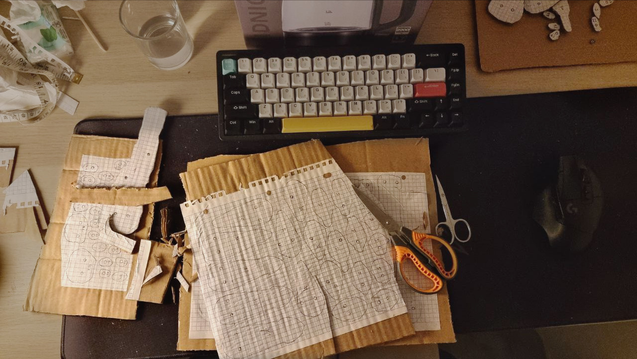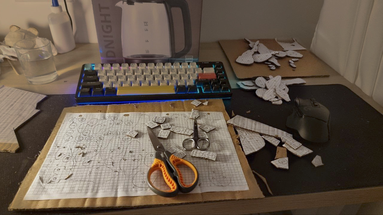 Evenings got filled with tracing shapes over and over, then glueing paper and cardboard sheets, then cutting all pieces out.